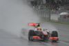 Al via i due piloti della McLaren conservano le rispettive posizioni. Dopo due giri entra in pista la Safety Car, Hamilton ne approfitta per montare le gomme intermedie e scivola al quattordicesimo posto mentre Button rimane in pista. Dopo tre giri la corsa riprende e smette di piovere, Hamilton ritorna ai box per cambiare le gomme e sorpassa Vettel in corsia di ingresso box, al termine dell'operazione i due percorrono la corsia box affiancati, manovra che verrà valutata dai commissari dopo il GP; Button si ritrova secondo, dietro Rosberg. Hamilton, undicesimo, sorpassa prima Webber, poi Vettel e Sutil e poi Schumacher e rimonta fino al quinto posto. Al ventunesimo giro ritorna a piovere, Button ed Hamilton ritornano ai box per cambiare le gomme, ritornano in pista primo e settimo poi, entra in scena ancora la Safety Car per altri quattro giri. Al ventisettesimo giro Hamilton passa Petrov e due giri dopo Kubica e si ritrova terzo. Al trentanovesimo, ultimo cambio gomme che non muta la posizione di Button ma che permette ad Hamilton di uscire davanti a Rosberg. Di Hamilton è il Giro Più Veloce della corsa.